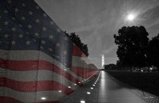 Colorized Black & White Vietnam War Wall Memorial Covered By American Flag