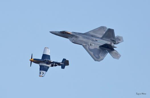 U.S. Air Force F-22 Raptor Stealth Fighter & World War II Planes